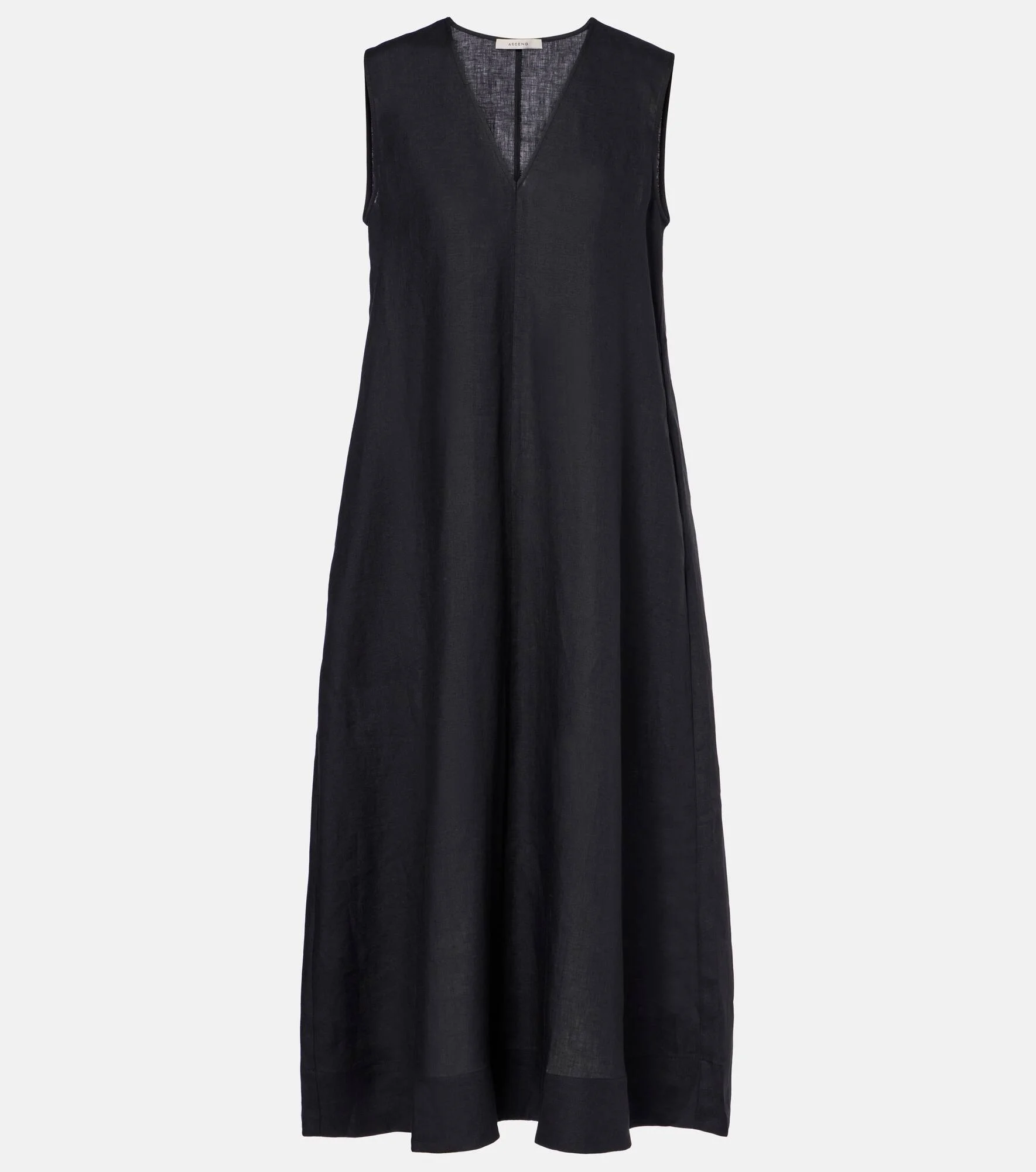The Nisha midi dress by Asceno is destined to be your go-to for sunny getaways. Crafted from breathable linen, this sleeveless design showcases a flattering V-neckline, making it an ideal pick for effortless elegance. Product Details - Material: 100% linen - Care instructions: machine wash at 30 degrees - Made in Portugal - Designer color name: Black - Item color: black - Collar: V-neck - Pockets: side slit pockets - Item number: P01073849 Size & Fit - True to size - Designed for a loose fit - Non-stretchy fabric - The model seen in the picture is 178cm-5'10" and wearing a size XS
