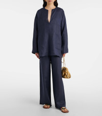 Product Details - Material: 100% linen - Care instructions: machine wash at 30 degrees - Made in Portugal - Designer color name: Ocean Navy - Pockets: slit pockets - Item number: P01033185 Size & Fit - True to size - Dropped shoulders - Oversized - Non-stretchy fabric - Falls below the hip - The model seen in the picture is 178cm-5'10" and wearing a size XS