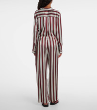Defined by a relaxed, effortless energy, Asceno’s time-tested silhouettes are informed by the brand’s heritage in sleepwear. Made from silk satin, the Rosa pajama pants are characterized by their all-over striped print. Product Details - Material: 100% silk - Care instructions: hand wash - Made in China - Designer color name: Maroon Fine Stripe - Item color: multicolor - Elasticated waistband - Pockets: side slit pockets - Item number: P01093375 Size & Fit - True to size - Elasticated waist - Non-stretchy fabric - Straight leg - The model seen in the picture is 178cm-5'10" and wearing a size XS