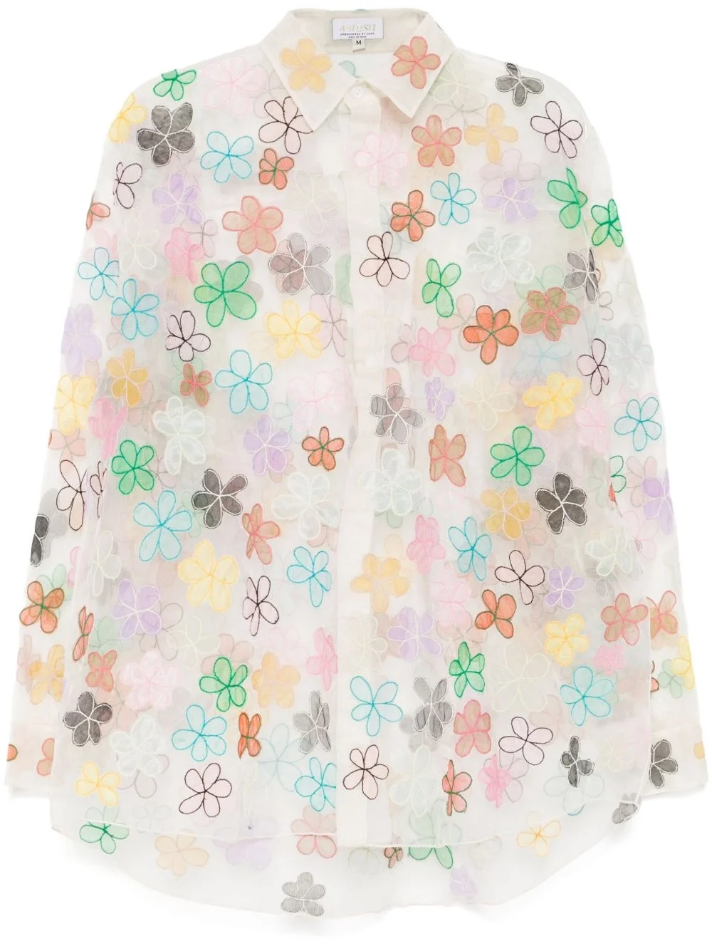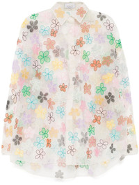 silk shirt Highlights - White/multicolour - Front button fastening - Embroidered design - Semi-sheer construction Imported Composition Silk 100% SIZE & FIT Model measurements Height 5 ft 10 in(1.77 m) Bust/Chest 31.49 in(80 cm) Hips 35.43 in(90 cm) Waist 25.19 in(64 cm) FittingInformation Designed to be unstructured, offering a loose fit throughout Made from a midweight non-stretch fabric