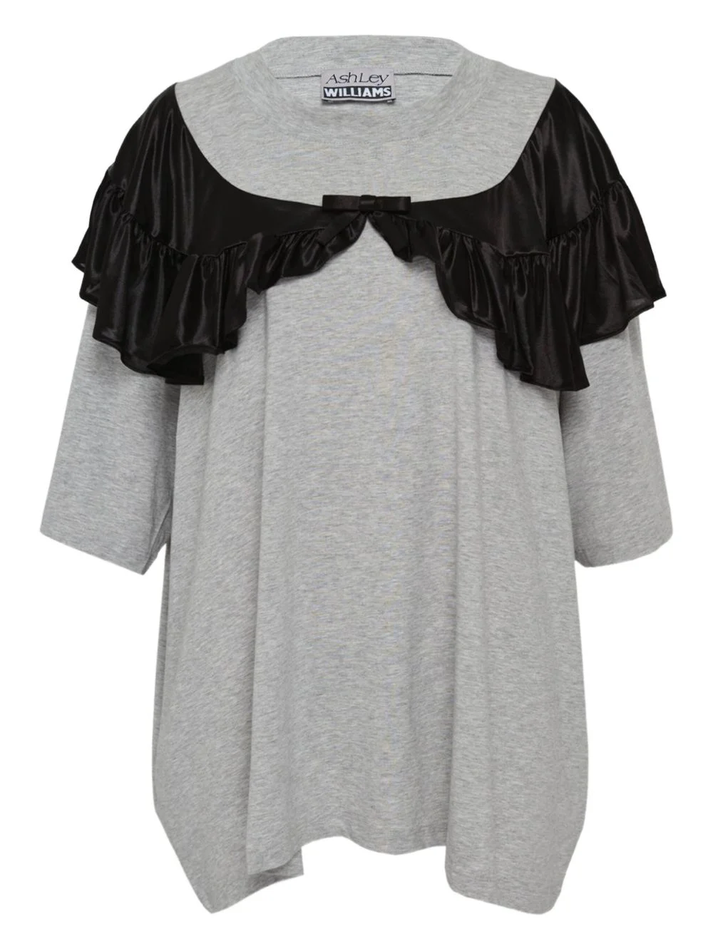 Curtain ruffled T-shirt Highlights - Grey - Ruffled trim - Bow detail - Round neck - Short sleeves - Straight hem Imported Composition Cotton 95%, Spandex/Elastane 5% Washing instructions Machine Wash