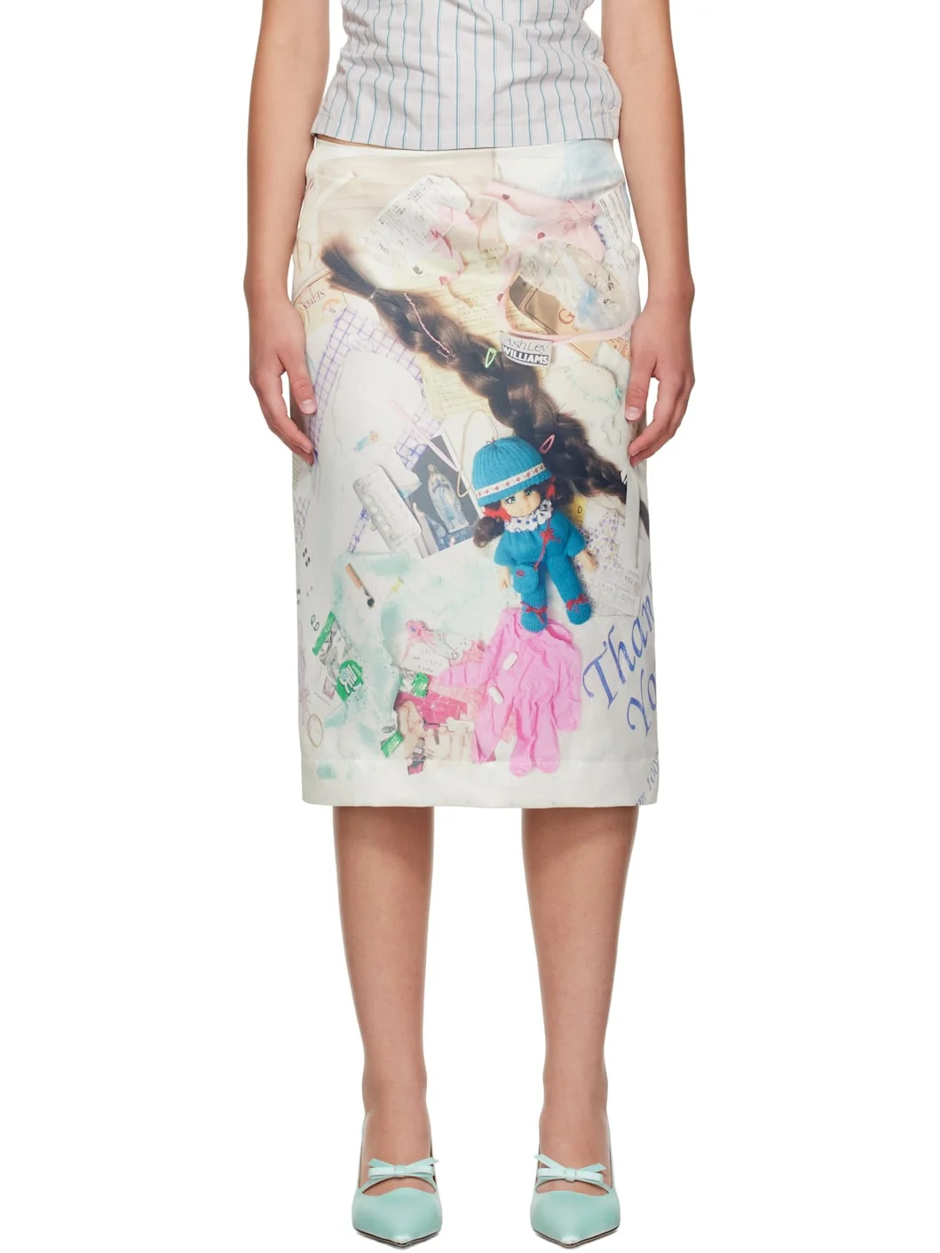Satin midi skirt. · Logo and graphic pattern printed throughout · Zip closure at back · Central vent at back hem Supplier color: Treasures 100% polyester. Made in United Kingdom 252927F092002