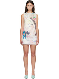 Satin minidress. · Logo and graphic pattern printed throughout · Round neck · Zip closure at back Supplier color: Treasures 100% polyester. Made in India 252927F052002
