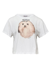 maltese-dog graphic T-shirt Highlights - White - Maltese dog graphic - Crew neck - Short sleeves Imported Composition Fabric 100% Washing instructions Read Manufacturer Guidelines