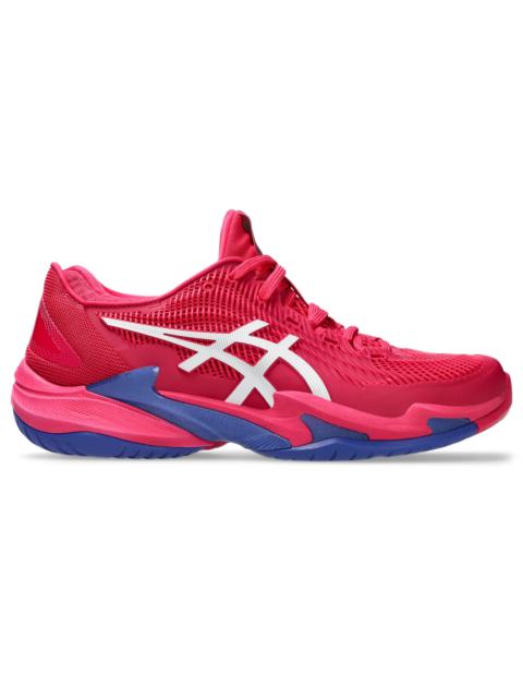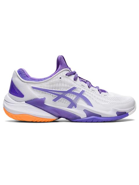 The COURT FF™ 3 tennis shoes are designed to help you swing stronger and recover quicker between shots. It creates a stable landing and reduces the load placed on the body. As a result, you’re able to put more energy into generating a powerful swing. For a smoother crossover step, this shoe allows you to perform quicker turns in a shorter timeframe. With good outsole grip and a TWISTRUSS™ support system, you can push off the ground with more force. This helps you quickly recover and get back to your ready position more smoothly. Style #: 1042A220.700 UPC #: None Tech & Materials FLYTEFOAM® technology Provides lightweight cushioning and impact absorption Forefoot GEL® technology Improves impact absorption and creates a softer feeling at footstrike TWISTRUSS™ technology Improves quickness and cutting motions PGUARD® technology Helps increase durability in the outsole's toe and heel area MONO-SOCK™ construction Helps improve stability AHAR®PLUS™ rubber outsole Improves durability The sockliner is produced with the solution dyeing process that reduces water usage by approximately 33% and carbon emissions by approximately 45% compared to the conventional dyeing technology