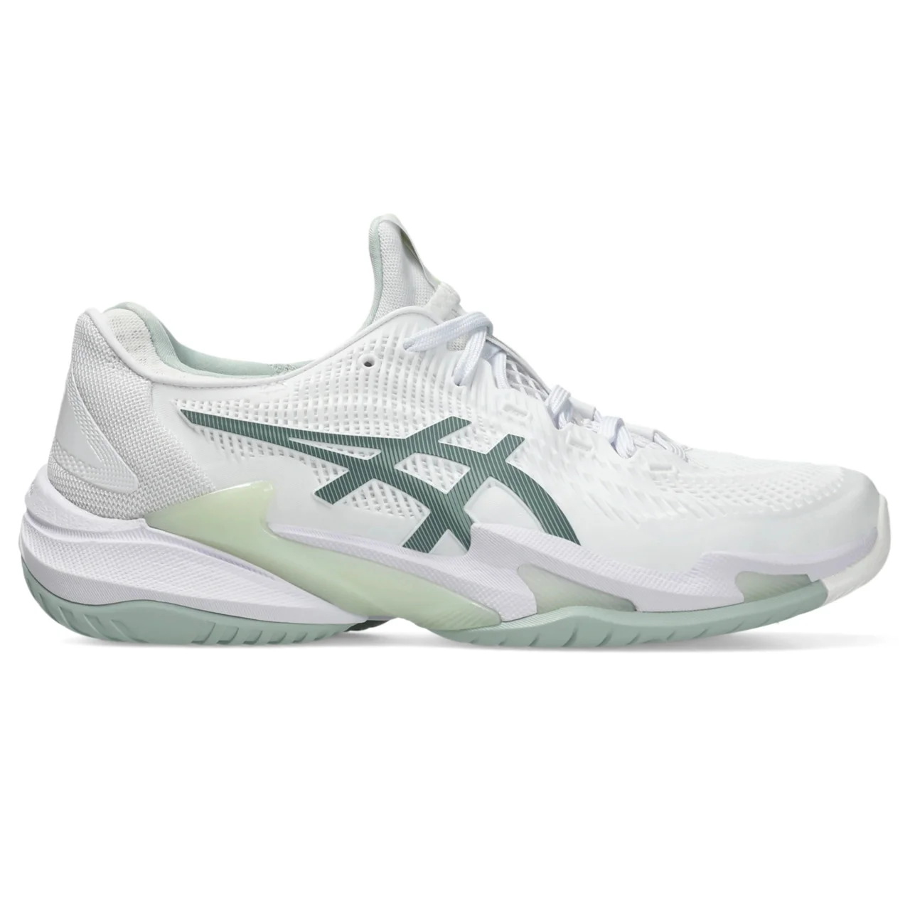 The COURT FF™ 3 tennis shoes are designed to help you swing stronger and recover quicker between shots. It creates a stable landing and reduces the load placed on the body. As a result, you’re able to put more energy into generating a powerful swing. For a smoother crossover step, this shoe allows you to perform quicker turns in a shorter timeframe. With good outsole grip and a TWISTRUSS™ support system, you can push off the ground with more force. This helps you quickly recover and get back to your ready position more smoothly. Style #: 1042A220.106 UPC #: None Tech & Materials FLYTEFOAM® technology Provides lightweight cushioning and impact absorption Forefoot GEL® technology Improves impact absorption and creates a softer feeling at footstrike TWISTRUSS™ technology Improves quickness and cutting motions PGUARD® technology Helps increase durability in the outsole's toe and heel area MONO-SOCK™ construction Helps improve stability AHAR®PLUS™ rubber outsole Improves durability The sockliner is produced with the solution dyeing process that reduces water usage by approximately 33% and carbon emissions by approximately 45% compared to the conventional dyeing technology