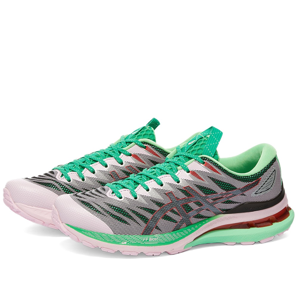 Designed by the Kiko Kostadinov Studio, this versatile sneaker from Asics draws inspiration from the outdoor elements. The upper’s seamless construction and texture is dressed in a grey, pink and green colourway and is crafted from thirty percent recycled materials while cushioning GEL™ technology and FF BLAST™ cushioning supports from below for optimal comfort. - Synthetic Uppers - Rubber Outsole - GEL™ Cushioning - FF BLAST™ Cushioning