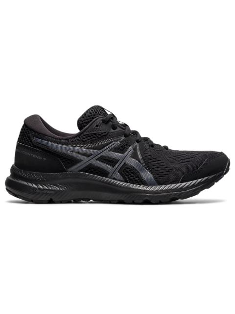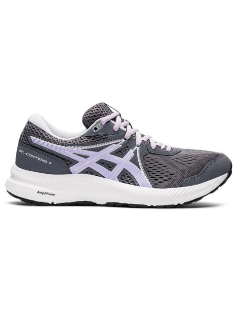 The GEL-CONTEND™ 7 running shoe provides excellent cushioning for runners seeking a combination of durability and support. Designed with an engineered mesh upper, this application stretches with the foot's natural motion and creates an excellent fit. The synthetic stitching on the overlays helps create a more supportive foothold. By following a more sustainable design approach, this shoe also uses fewer resources to color the sockliner. The reliable cushioning stems from rearfoot GEL® technology, a durable AMPLIFOAM™ midsole, and an ORTHOLITE™ sockliner that are each designed to improve comfort and provide excellent shock absorption. Following the natural progression of the foot, GUIDANCE LINE™ technology helps generate a more natural and consistent stride. Additionally, the flex grooves in the outsole increase the shoe's flexibility during your step-creating a more natural feel from footstrike to toe-off. Style #: 1012A911.410 UPC #: 196074013029 Tech & Materials GEL® Technology Cushioning provides excellent shock absorption GEL® Technology Cushioning provides excellent shock absorption Engineered mesh upper improves airflow Engineered Mesh Upper Multi-directional mesh material improves ventilation and stability. Ortholite® Sockliner Moisture management (Ortholite is a registered trademark of O2 Partners LLC). Ortholite® Sockliner Moisture management (Ortholite is a registered trademark of O2 Partners LLC). Flex grooves in the outsole improve flexibility Flex grooves in the outsole Improves flexibility Synthetic stitching on the overlays improves support Synthetic stitching on the overlays Improves support AmpliFoam™ Midsole Engineered to maintain durability at softer densities, providing better flexibility, comfort, and platform adaptability ideal for natural running. AmpliFoam™ Midsole Engineered to maintain durability at softer densities, providing better flexibility, comfort, and platform adaptability ideal for natural running. Guidance Line® Midsole Technology Vertical flex groove decouples the tooling along the line of progression for enhanced gait efficiency. Guidance Line® Midsole Technology Vertical flex groove decouples the tooling along the line of progression for enhanced gait efficiency.