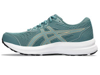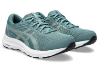 The GEL-CONTEND® 8 running shoe provides good cushioning, support, and durability. A jacquard mesh upper stretches with the foot's natural motion and creates a comfortable fit. Meanwhile, the synthetic stitching on the overlays helps create a more supportive foothold. The midsole features GEL® technology and AMPLIFOAM™ cushioning. These technologies help increase durability while creating a softer feel underfoot. Style #: 1012B320.410 UPC #: 196074899777 Tech & Materials Rearfoot GEL® technology cushioning improves impact absorption and creates a softer feeling at footstrike Jacquard mesh upper improves airflow OrthoLite™ sockliner offers excellent step-in comfort Flex grooves in the outsole improve flexibility Synthetic stitching on the overlays improves support AMPLIFOAM™ cushioning helps improve durability GUIDANCE LINE® technology provides a more consistent stride At least 20% of the shoe’s main upper material is made with recycled materials to reduce waste and carbon emissions The sockliner is produced with the solution dyeing process that reduces water usage by approximately 33% and carbon emissions by approximately 45% compared to the conventional dyeing technology