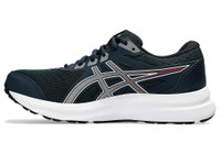 The GEL-CONTEND® 8 running shoe provides good cushioning, support, and durability. A jacquard mesh upper stretches with the foot's natural motion and creates a comfortable fit. Meanwhile, the synthetic stitching on the overlays helps create a more supportive foothold. The midsole features GEL® technology and AMPLIFOAM™ cushioning. These technologies help increase durability while creating a softer feel underfoot. Style #: 1012B320.411 UPC #: 196074914777 Tech & Materials Rearfoot GEL® technology cushioning improves impact absorption and creates a softer feeling at footstrike Jacquard mesh upper improves airflow OrthoLite™ sockliner offers excellent step-in comfort Flex grooves in the outsole improve flexibility Synthetic stitching on the overlays improves support AMPLIFOAM™ cushioning helps improve durability GUIDANCE LINE® technology provides a more consistent stride At least 20% of the shoe’s main upper material is made with recycled materials to reduce waste and carbon emissions The sockliner is produced with the solution dyeing process that reduces water usage by approximately 33% and carbon emissions by approximately 45% compared to the conventional dyeing technology