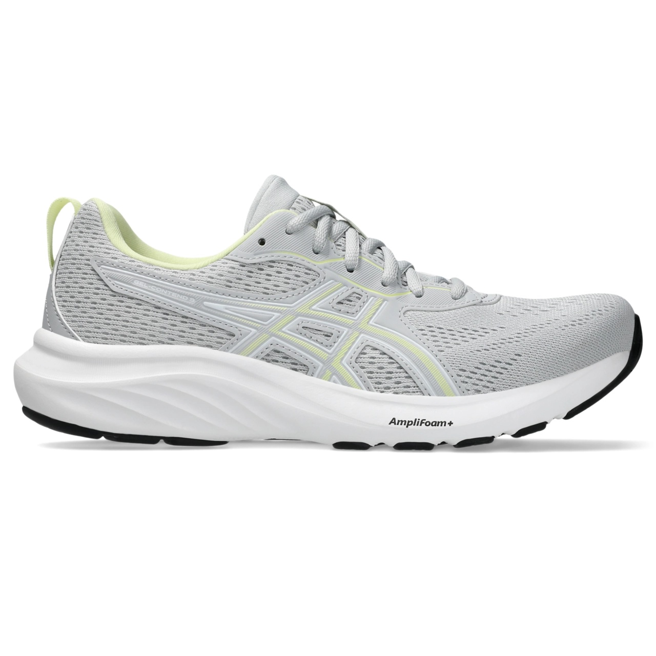 The GEL-CONTEND® 9 running shoe provides good cushioning, support, and durability. An engineered mesh upper stretches with the foot's natural motion and creates a comfortable fit. Meanwhile, the synthetic stitching on the overlays helps create a more supportive foothold. The midsole features GEL® technology and AMPLIFOAM+ cushioning. These technologies help increase durability while creating a softer feel underfoot. Additionally, a TRUSSTIC® support unit and wrap-up outsole improve stability while allowing your feet to move freely. This lets you change directions more confidently, particularly if you're moving side-to-side. Style #: 1012B681.021 UPC #: None Tech & Materials Rearfoot GEL® technology cushioning Improves impact absorption and creates a softer feeling at footstrike Jacquard mesh upper Improves airflow OrthoLite™ sockliner Offers excellent step-in comfort Flex grooves in the outsole improve flexibility Synthetic stitching on the overlays improves support AMPLIFOAM+ cushioning Helps improve durability TRUSSTIC® technology Improves stability GUIDANCE LINE™ technology Provides a more consistent stride At least 20% of the shoe’s main upper material is made with recycled materials to reduce waste and carbon emissions The sockliner is produced with the solution dyeing process that reduces water usage by approximately 33% and carbon emissions by approximately 45% compared to the conventional dyeing technology
