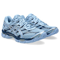 Originally launched in 2014, the GEL-CUMULUS® 16 sneaker is formerly recognized for its soft cushioning capabilities while running longer distances. Its upper construction features a combination of glossy synthetic leather overlays, no-sew paneling, and open mesh underlays. This fusion of materials creates a technical aesthetic that's symbolic of advanced running shoes in the 2010s. The sneaker's soft cushioning properties are left intact. It features dual GEL® technology inserts, FLUIDRIDE™ technology, and FLYTEFOAM® technology to help provide a comfortable feel underfoot. Style #: 1203A733.400 UPC #: None Tech & Materials Breathable mesh underlays 2010s design aesthetics FLUIDRIDE™ technology Helps create smooth forward transitions Rearfoot and forefoot GEL® technology Shock-attenuating material placed in the midsole of the shoe for cushioning and shock absorption. The sockliner is produced with the solution dyeing process that reduces water usage by approximately 33% and carbon emissions by approximately 45% compared to the conventional dyeing technology's