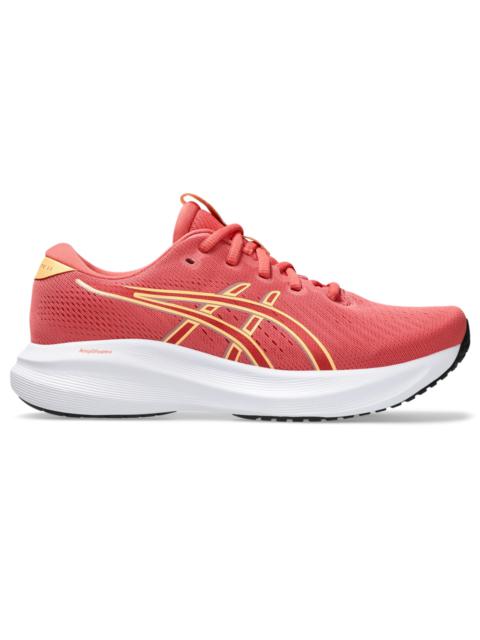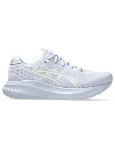 The GEL-EXCITE™ 11 shoe features a comfortable and versatile design. It's formed to help create more underfoot comfort for your run and fitness routine. Layered with AMPLIFOAM™ PLUS technology in the midsole, this shoe also includes a higher stack height to help provide a more soft and comfortable cushioning experience. Style #: 1012B861.020 UPC #: None Tech & Materials FF BLAST™ PLUS cushioning Midsole foam that provides a blend of cloud like cushioning and a responsive ride that is lighter than FF BLAST™ Technology. PureGEL™ technology Softer, updated version of our GEL® technology. Approximately 65% softer vs standard GEL® technology. Engineered mesh upper A lightweight, breathable mesh material helps reduce the need for additional overlays. FLUIDRIDE™ outsole Helps create smoother strides AMPLIFOAM™ PLUS cushioning Midsole cushioning that provides a more soft and comfortable ride than standard AMPLIFOAM™ cushioning. Reflective details Designed to help improve visibility OrthoLite™ X-30 sockliner Sockliner that provides cushioning performance and moisture management for a cooler, dryer environment. Knit heel pull tab This comfortable heel tab makes the shoe easier and more comfortable to put on and take off. The sockliner is produced with the solution dyeing process that reduces water usage by approximately 33% and carbon emissions by approximately 45% compared to the conventional dyeing technology At least 75% of the shoe's main upper material is made with recycled content to reduce waste and carbon emissions
