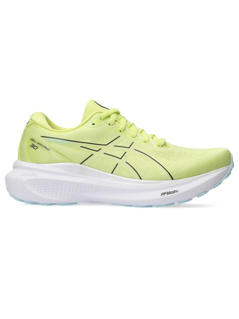 From 5Ks to full marathons, the GEL-KAYANO® 30 shoe is designed to provide advanced stability and softer cushioning properties. The new 4D GUIDANCE SYSTEM™ helps provide adaptive stability. This helps you experience a more supportive and balanced stride during your distance training. Its midsole is revamped with FF BLAST™ PLUS ECO cushioning and a 4mm stack height increase. With approximately 20% bio-based content, this material helps create cloud-like softness in every step. The new PureGEL® technology is strategically positioned below the heel for a smoother ride. It's 65% softer than conventional visible GEL® technology, allowing your distance training to feel surprisingly smooth. Style #: 1012B357.702 UPC #: 197298118002 Tech & Materials Engineered stretch knit upper improves breathability External back heel counter helps keep the foot stable and provide a more comfortable stride 4D GUIDANCE SYSTEM™ feature Helps create adaptive stability for a more balanced stride Rearfoot PureGEL® technology Helps provide lightweight cushioning and softer landings FF BLAST™ PLUS ECO cushioning is made with approximatley 20% bio-based content and helps provide cloud-like comfort OrthoLite™ X-55 sockliner Improves comfort Reflective details Designed to help improve visibility AHAR®PLUS™ heel plug Improves the outsole durability At least 75% of the shoe’s main upper material is made with recycled materials to reduce waste and carbon emissions The sockliner is produced with the solution dyeing process that reduces water usage by approximately 33% and carbon emissions by approximately 45% compared to the conventional dyeing technology Vegan Friendly: For this product, no materials of animal origin are applied in the design and material selection stages, including: the yarns, glues or other adhesives applied in the product. *The product is not certified as vegan by an independent third party.