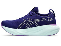 The GEL-NIMBUS® 25 shoe's soft cushioning properties help you feel like you're landing on clouds. This neutral trainer is revamped with new materials that create a softer and smoother running experience. A soft knit upper comfortably wraps your foot while supplying advanced ventilation. Its updated knit tongue construction provides better flexibility and extends around the ankle for a more luxurious fit and feel. The midsole is packed with the most cushioning that the series has offered to date. By adding more FF BLAST™ PLUS ECO cushioning and using our new PureGEL™ technology, this trainer creates a lighter and softer cushioning experience. Style #: 1012B356.402 UPC #: 196074922437 Tech & Materials Engineered knit upper Wraps the foot with a soft feel while improving breathability At least 75% of the shoe's main upper material is made with recycled content to reduce waste and carbon emissions The sockliner is produced with the solution dyeing process that reduces water usage by approximately 33% and carbon emissions by approximately 45% compared to the conventional dyeing technology PureGEL™ technology Helps provide lightweight cushioning and softer landings FF BLAST™ ECO PLUS technology Cushioning creates a softer landing and a more responsive toe-off OrthoLite™ X-55 sockliner Improves step-in comfort Reflective details Designed to improve visibility in low-light conditions AHAR™ outsole rubber Improves durability
