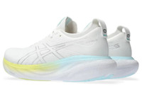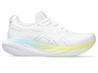 The GEL-NIMBUS® 25 shoe's soft cushioning properties help you feel like you're landing on clouds. This neutral trainer is revamped with new materials that create a softer and smoother running experience. A soft knit upper comfortably wraps your foot while supplying advanced ventilation. Its updated knit tongue construction provides better flexibility and extends around the ankle for a more luxurious fit and feel. The midsole is packed with the most cushioning that the series has offered to date. By adding more FF BLAST™ PLUS ECO cushioning and using our new PureGEL™ technology, this trainer creates a lighter and softer cushioning experience. Style #: 1012B356.105 UPC #: 196074919017 Tech & Materials Engineered knit upper Wraps the foot with a soft feel while improving breathability At least 75% of the shoe's main upper material is made with recycled content to reduce waste and carbon emissions The sockliner is produced with the solution dyeing process that reduces water usage by approximately 33% and carbon emissions by approximately 45% compared to the conventional dyeing technology PureGEL™ technology Helps provide lightweight cushioning and softer landings FF BLAST™ ECO PLUS technology Cushioning creates a softer landing and a more responsive toe-off OrthoLite™ X-55 sockliner Improves step-in comfort Reflective details Designed to improve visibility in low-light conditions AHAR™ outsole rubber Improves durability