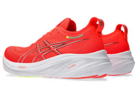 The GEL-NIMBUS® 26 shoe's soft cushioning properties help you feel like you're landing on clouds. This design is revamped to help create a softer and smoother running experience. A soft engineered knit upper comfortably wraps your foot while supplying advanced ventilation. Additionally, the knit tongue and collar help provide a soft and supportive feel. By using FF BLAST™ PLUS ECO cushioning, this trainer creates a lighter and softer cushioning experience with less of an impact on the environment. Lastly, ASICS®GRIP™ outsole rubber helps create better traction, improved softness, and advanced durability. Style #: 1012B601.600 UPC #: 197298208000 Tech & Materials Engineered knit upper Wraps the foot with a soft feel At least 75% of the shoe's main upper material is made with recycled content to reduce waste and carbon emissions The sockliner is produced with the solution dyeing process that reduces water usage by approximately 33% and carbon emissions by approximately 45% compared to the conventional dyeing technology PureGEL® technology Helps provide lightweight cushioning and softer landings FF BLAST™ PLUS ECO technology Cushioning creates a softer landing and a more responsive toe-off OrthoLite™ X-55 sockliner Improves step-in comfort Reflective details Designed to improve visibility in low-light conditions AHAR®PLUS™ outsole rubber Improves durability ASICS®GRIP™ outsole rubber Help create better traction, improved softness, and advanced durability