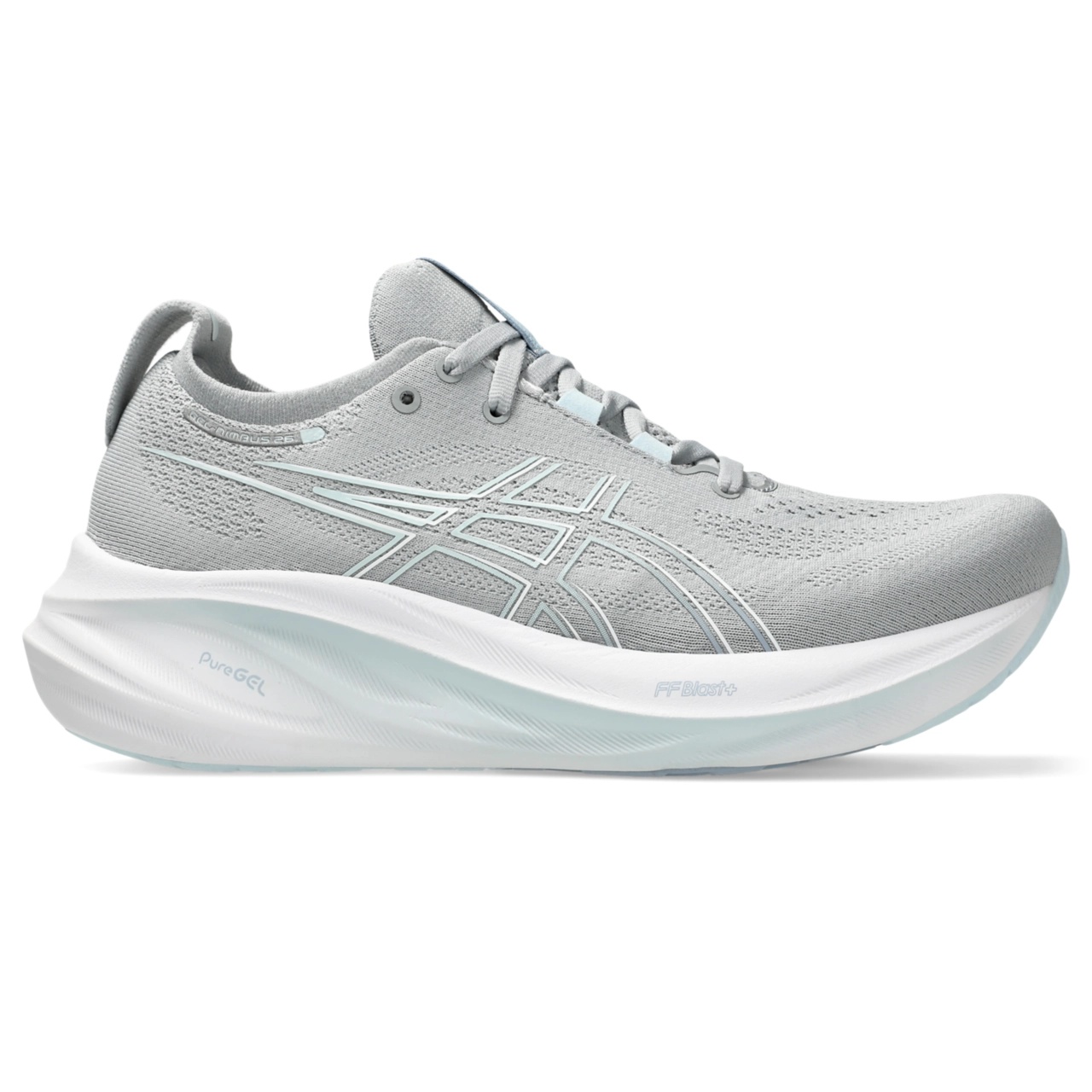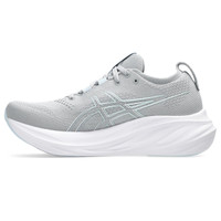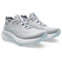 The GEL-NIMBUS® 26 (Wide) shoe's soft cushioning properties help you feel like you're landing on clouds. This design is revamped to help create a softer and smoother running experience. A soft engineered knit upper comfortably wraps your foot while supplying advanced ventilation. Additionally, the knit tongue and collar help provide a soft and supportive feel. By using FF BLAST™ PLUS ECO cushioning, this trainer creates a lighter and softer cushioning experience with less of an impact on the environment. Lastly, ASICS®GRIP™ outsole rubber helps create better traction, improved softness, and advanced durability. Style #: 1012B602.022 UPC #: 197298476348 Tech & Materials Engineered knit upper Wraps the foot with a soft feel At least 75% of the shoe's main upper material is made with recycled content to reduce waste and carbon emissions The sockliner is produced with the solution dyeing process that reduces water usage by approximately 33% and carbon emissions by approximately 45% compared to the conventional dyeing technology PureGEL® technology Helps provide lightweight cushioning and softer landings FF BLAST™ PLUS ECO technology Cushioning creates a softer landing and a more responsive toe-off OrthoLite™ X-55 sockliner Improves step-in comfort Reflective details Designed to improve visibility in low-light conditions AHAR® outsole rubber Improves durability ASICS®GRIP™ outsole rubber Help create better traction, improved softness, and advanced durability Wide fit