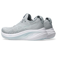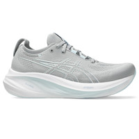 The GEL-NIMBUS® 26 shoe's soft cushioning properties help you feel like you're landing on clouds. This design is revamped to help create a softer and smoother running experience. A soft engineered knit upper comfortably wraps your foot while supplying advanced ventilation. Additionally, the knit tongue and collar help provide a soft and supportive feel. By using FF BLAST™ PLUS ECO cushioning, this trainer creates a lighter and softer cushioning experience with less of an impact on the environment. Lastly, ASICS®GRIP™ outsole rubber helps create better traction, improved softness, and advanced durability. Style #: 1012B601.022 UPC #: 197298460521 Tech & Materials Engineered knit upper Wraps the foot with a soft feel At least 75% of the shoe's main upper material is made with recycled content to reduce waste and carbon emissions The sockliner is produced with the solution dyeing process that reduces water usage by approximately 33% and carbon emissions by approximately 45% compared to the conventional dyeing technology PureGEL® technology Helps provide lightweight cushioning and softer landings FF BLAST™ PLUS ECO technology Cushioning creates a softer landing and a more responsive toe-off OrthoLite™ X-55 sockliner Improves step-in comfort Reflective details Designed to improve visibility in low-light conditions AHAR®PLUS™ outsole rubber Improves durability ASICS®GRIP™ outsole rubber Help create better traction, improved softness, and advanced durability