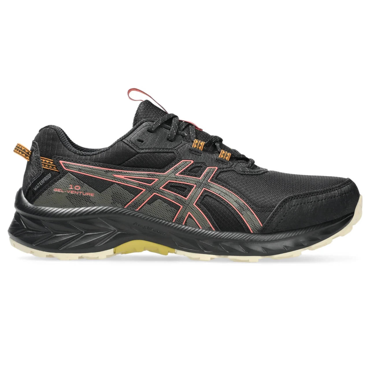 The GEL-VENTURE® 10 Waterproof shoe is designed to help provide good cushioning and comfort in wet conditions. This version features a waterproof upper that helps keep water out of the shoe's interior. The midsole is formed with AMPLIFOAM™ cushioning and rearfoot GEL® technology to help create a softer and more comfortable feel underfoot. Meanwhile, the outsole features an advanced traction pattern that's functional for the road and trail surfaces. Style #: 1012B760.002 UPC #: None Tech & Materials Waterproof upper The sockliner is produced with the solution dyeing process that reduces water usage by approximately 33% and carbon emissions by approximately 45% compared to the conventional dyeing technology Rearfoot GEL® technology Improves impact absorption and creates a softer feeling at footstrike AMPLIFOAM™ cushioning Improves cushioning Trail-specific outsole pattern Improves grip on various surfaces