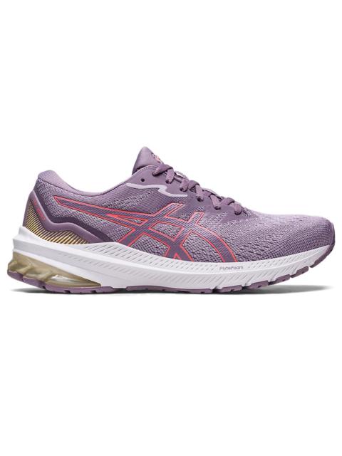 Our key focus for the GT-1000™ 11 shoe was to make it softer and smoother. Designed for an active lifestyle, this shoe is functional for running or wearing to the gym. FLYTEFOAM® cushioning in the midsole is tuned with a lower density than the previous version. Teamed with GEL® technology, this combination creates softer landings and smoother transitions. LITETRUSS™ technology is placed on the midsole’s inside angle to reduce pronation. It helps produce a more supportive stride while keeping overpronation at bay. Style #: 1012B197.001 UPC #: 196074083329 Tech & Materials Engineered mesh upper Improves breathability and wraps the foot with a soft feel. External heel counter Improves the fit and helps increase stability. LITETRUSS™ technology Improves medial support and midfoot integrity. FLYTEFOAM™ cushioning Provides lightweight impact absorption. Rearfoot GEL™ technology Improves impact absorption and creates a softer feeling at footstrike. OrthoLite™ X-30 sockliner Provides soft step-in comfort.