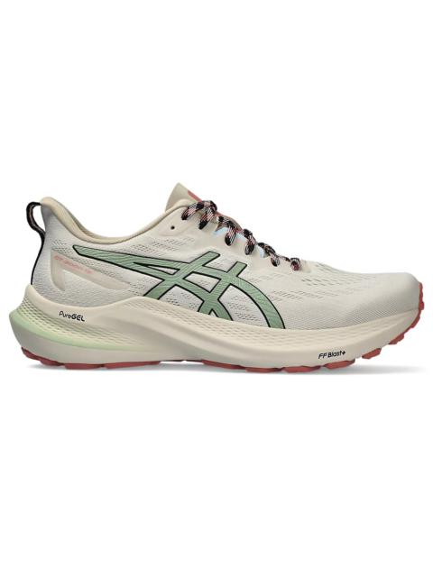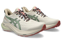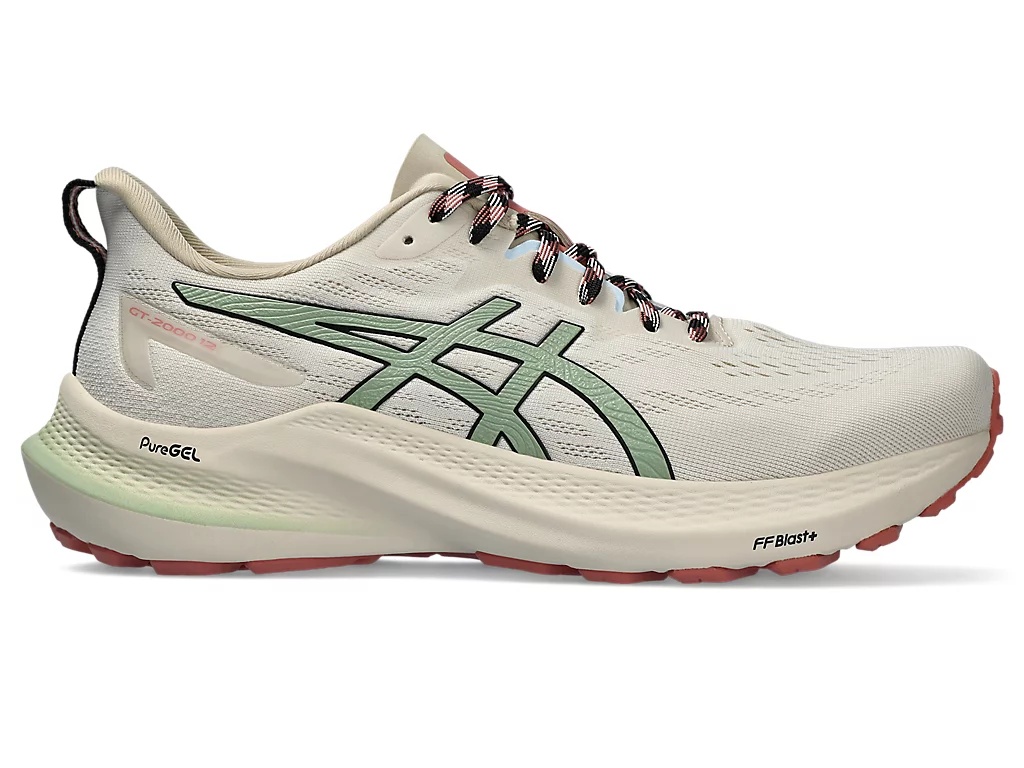 The GT-2000™ 12 TR shoe from the NATURE BATHIN Collection is inspired by a forest's calming color palette. It's a versatile trainer for when your run takes you from the road to easy trails. The midsole is updated with a full-length FF BLAST™ PLUS cushioning unit and PureGEL™ technology. These features help provide a more energized toe-off with cloud-like softness underfoot. Meanwhile, the 3D GUIDANCE SYSTEM™ consists of wider basenets and an increased heel bevel and forefoot flare. As a result, you'll experience a silky-smooth transition from footstrike to toe-off. Lastly, the outsole's hybrid tread pattern make this shoe functional for running on both road and trail surfaces. Style #: 1012B587.250 UPC #: 197298164535 Tech & Materials Jacquard mesh upper Offers a supportive and comfortable foothold At least 50% of the shoe's main upper material is made with recycled content to reduce waste and carbon emissions The sockliner is produced with the solution dyeing process that reduces water usage by approximately 33% and carbon emissions by approximately 45% compared to the conventional dyeing technology 3D GUIDANCE SYSTEM™ helps provide advanced stability for a smoother stride Rearfoot PureGEL™ technology Helps provide lightweight cushioning and softer landings FF BLAST™ PLUS cushioning Helps provides lightweight impact absorption and a responsive rebound OrthoLite™ X-30 sockliner Helps provides soft step-in comfort AHARPLUS™ heel plug rubber Helps improve durability AHAR™ LO-HRD outsole material Helps improve resistance against wear Reflective details Designed to help improve visibility in low-light settings Vegan Friendly: For this product, no materials of animal origin are applied in the design and material selection stages, including: the yarns, glues or other adhesives applied in the product. *The product is not certified as vegan by an independent third party. Trail specific outsole pattern