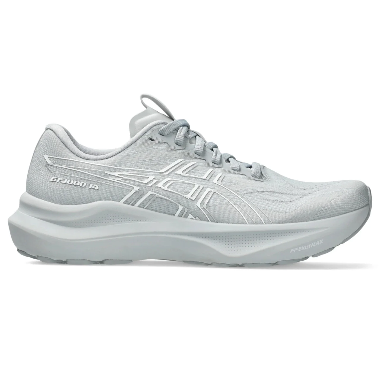 The GT-2000™ 14 shoe is designed to help provide a more energetic ride and a supportive running experience. A trampoline-inspired forefoot pod is positioned on the medial side of the outsole. This helps produce better stability and a more balanced toe-off. The midsole is updated with a FF BLAST™ MAX cushioning unit. Creating a more energized toe-off, this foam also offers cloud-like softness during the landing phase of your stride. Style #: 1012B843.020 UPC #: None Tech & Materials Woven mesh upper Breathable material helps keep your feet dry Asymmetric tongue wing A tongue feature that provides a comfortable and secure feel around the midfoot while reducing tongue movement. Trampoline-inspired outsole pod Our outsole and midsole design that captures more energy return for an enhanced foam bouncing effect during toe-off. 3D GUIDANCE SYSTEM™ Adaptive, on-demand stability system achieved through platform geometry and controlled deformation. Rearfoot PureGEL™ technology Softer, updated version of our GEL® technology. Approximately 65% softer vs standard GEL® technology. FF BLAST™ MAX cushioning One of our most energetic midsole foams that's complemented with cloud-like softness and a responsive energy return in each step. OrthoLite™ X-30 sockliner Sockliner that provides cushioning performance and moisture management for a cooler, dryer environment. AHARPLUS™ heel plug rubber ASICS' pinnacle high abrasion resistant rubber located in the heel area that is approximately three times more durable than standard outsole rubbers. AHAR® LO outsole rubber A lower-density rubber placed in key areas of the outsole for reliable grip and traction without sacrificing durability. Reflective details Designed to help improve visibility in low-light settings At least 50% of the shoe's main upper material is made with recycled content to reduce waste and carbon emissions The sockliner is produced with the solution dyeing process that reduces water usage by approximately 33% and carbon emissions by approximately 45% compared to the conventional dyeing technology