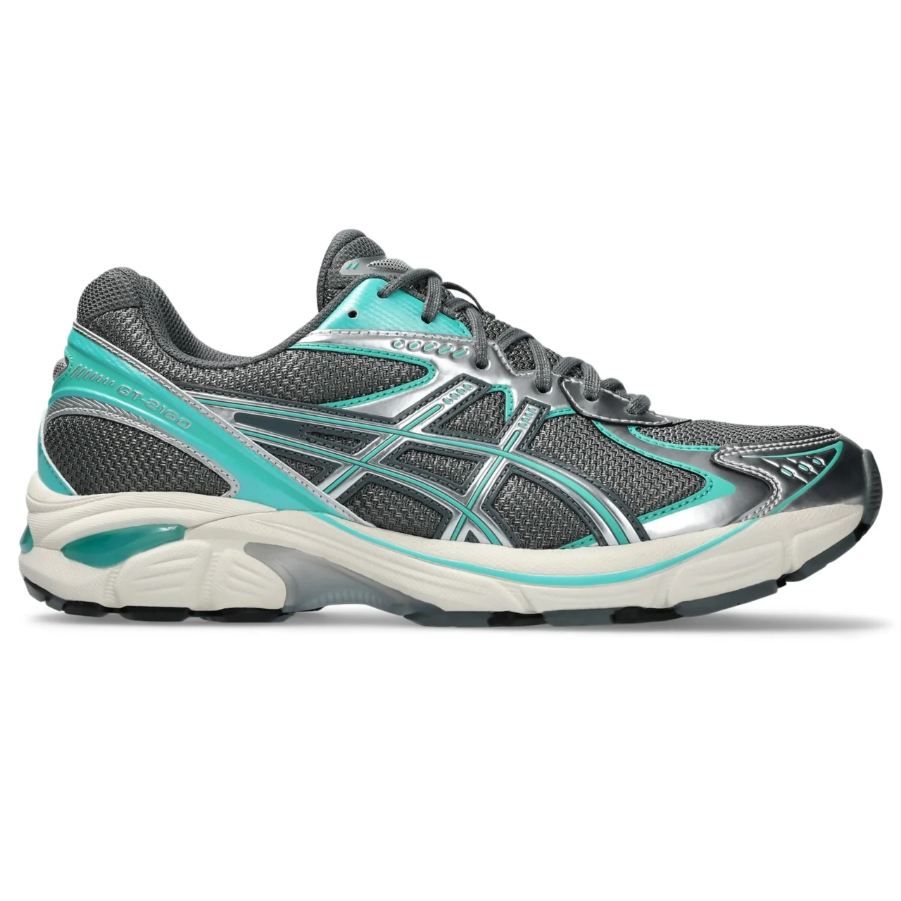 The GT-2160™ sneaker pays homage to the technical design language from the GT-2000™ series in the early 2010s. This rendition keeps the heritage trainer's iconic design language intact, preserving key features like its sleek aesthetic and wavy forefoot sculpting. Other influential details from the 2010s include a segmented midsole structure and GEL® technology inserts. This combination creates an industrial aesthetic that's met with advanced cushioning properties. Style #: 1203A604.021 UPC #: None Tech & Materials Sleek and wavy aesthetic is symbolic of the GT-2000™ series' technical design language Metallic mesh upper GEL™ technology inserts in the midsole for advanced cushioning underfoot Segmented midsole design is symbolic of ASICS running shoes in the 2010s At least 20% of the upper's synthetic leather is made with recycled materials The sockliner is produced with the solution dyeing process that reduces water usage by approximately 33% and carbon emissions by approximately 45% compared to the conventional dyeing technology