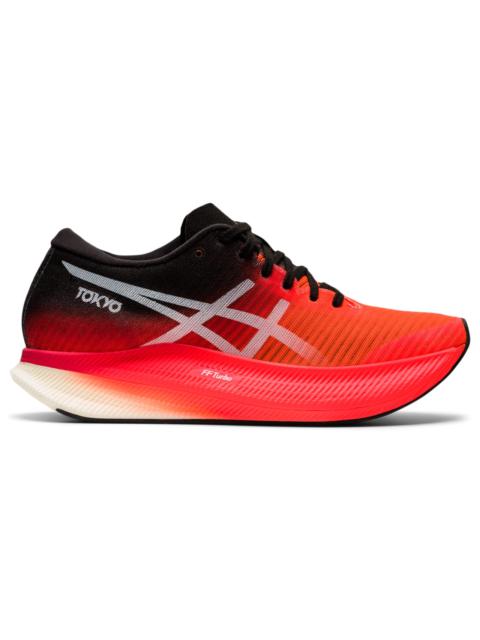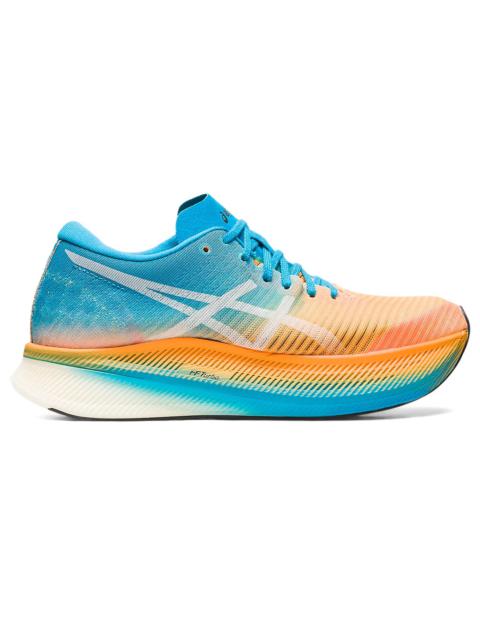 The METASPEED™ Sky racing shoe moves you towards a sound mind and a new personal best. It's designed to help you go faster by extending your stride length. Stride-style runners take a longer stride once they start increasing their speed, but their cadence primarily remains consistent. Thanks to an energetic midsole foam and a propulsive carbon plate, runners wearing these shoes will be able to conserve more energy while maintaining their pace at the later stages of the race.? Style #: 1012B069.600 UPC #: 194851861641 Tech & Materials Engineered mesh upper improves breathability Engineered Mesh Upper Multi-directional mesh material improves ventilation and stability. FLYTEFOAM BLAST TURBO™ Cushioning that improves compression and creates a responsive feel underfoot. FF BLAST TURBO™ cushioning improves compression and creates a responsive feel underfoot Curved Sole Design Helps runners conserver more energy in each step. Carbon Plate Guides your foot throughout your step and propels your foot forward. ASICSGRIP™ outsole rubber improves durability and grip ASICSGRIP™ Technology ASICS proprietary outsole rubber provides high grip on various terrain, without compromising durability.