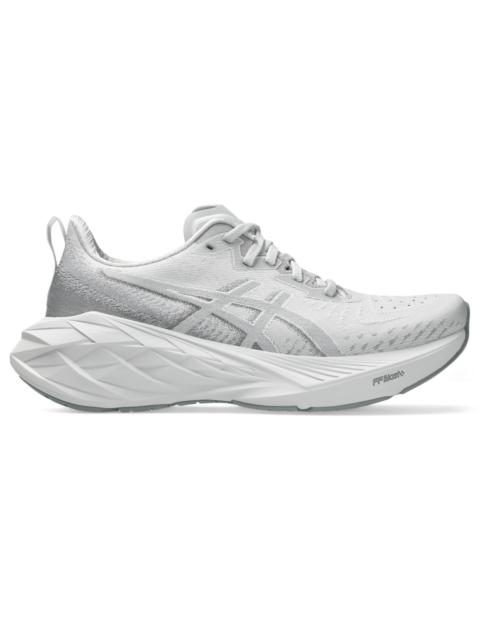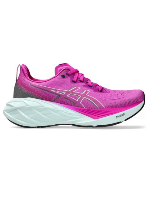 The NOVABLAST® 4 running shoe features a new midsole and outsole geometry that helps produce an energized ride. A tongue wing construction in the upper helps improve the fit while reducing tongue movement. It's complemented with an engineered woven upper that offers more stretch, ventilation, and durability. FF BLAST™ PLUS ECO cushioning is made with 20% recycled bio-based content. This material helps create softer landings and a more energized toe-off during your training. Style #: 1012B510.103 UPC #: 197298475624 Tech & Materials Engineered woven upper Offers advanced stretch, ventilation, and durability Tongue wing construction Added stretch helps improve the fit while reducingtonguemovement Gusseted tongue wing fit system Improves the midfoot fit and reduces tongue sliding FF BLAST™ PLUS ECO cushioning Made with approximately 20% bio-based content and helps provide cloud-like comfort Trampoline-inspired outsole design Helps provide a more responsive bounce back AHAR® outsole Improves durability At least 75% of the shoe’s main upper material is made with recycled materials to reduce waste and carbon emissions The sockliner is produced with the solution dyeing process that reduces water usage by approximately 33% and carbon emissions by approximately 45% compared to the conventional dyeing technology Reflective details Help improve visibility in low-light settings