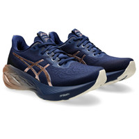 The NOVABLAST® 4 PLATINUM running shoe features midsole and outsole geometry that helps produce an energized ride. A tongue wing construction in the upper helps improve the fit while reducing tongue movement. It's complemented with an engineered woven upper that offers more stretch, ventilation, and durability. FF BLAST™ PLUS ECO cushioning is made with approximately 24% bio-based content. This material helps create softer landings and a more energized toe-off during your training. Style #: 1012B739.400 UPC #: 197298477567 Tech & Materials Engineered woven upper Offers advanced stretch, ventilation, and durability Tongue wing construction Added stretch helps improve the fit while reducingtonguemovement Gusseted tongue wing fit system Improves the midfoot fit and reduces tongue sliding FF BLAST™ PLUS ECO cushioning Made with approximately 20% bio-based content and helps provide cloud-like comfort Trampoline-inspired outsole design Helps provide a more responsive bounce back AHAR® outsole Improves durability At least 75% of the shoe’s main upper material is made with recycled materials to reduce waste and carbon emissions The sockliner is produced with the solution dyeing process that reduces water usage by approximately 33% and carbon emissions by approximately 45% compared to the conventional dyeing technology Reflective details Designed to help improve visibility