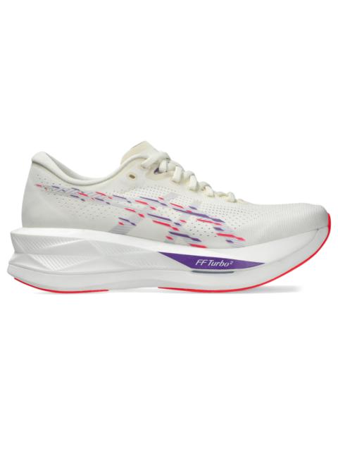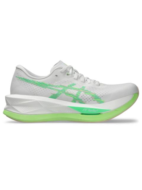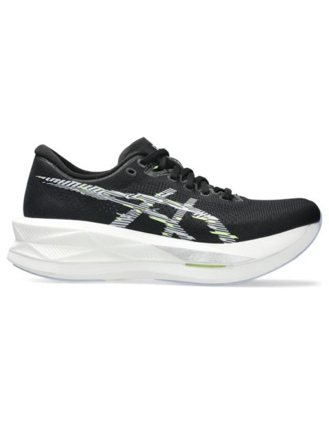 The SONICBLAST™ shoe offers a lightweight and responsive ride that makes it functional for tempo runs and your daily training. The midsole features a two-layered foam with FF BLAST™ MAX and FF TURBO²™ cushioning to help create a lightweight, bouncy, and advanced cushioning running experience. Additionally, an ASTROPLATE™ propulsion mechanism is centered in the foam. This helps propel your momentum forward, creating a faster feel underfoot. Style #: 1012B862.101 UPC #: None Tech & Materials Engineered mesh upper A lightweight, breathable mesh material helps reduce the need for additional overlays. ASTROPLATE™ technology Helps propel your stride forward FF BLAST MAX™ cushioning One of our most energetic midsole foams that's complemented with cloud-like softness and a responsive energy return in each step. FF TURBO²™ cushioning Our pinnacle FF TURBO foam that's the bounciest and most energetic midsole material, helping provide ultimate cushioning and rebound for your run. ASICSGRIP™ outsole rubber ASICS® proprietary outsole that provides advanced grip on a variety of terrain. The sockliner is produced with the solution dyeing process that reduces water usage by approximately 33% and carbon emissions by approximately 45% compared to the conventional dyeing technology