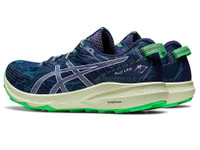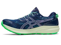The FUJI LITE™ 3 shoe is inspired by the Hinoki Cypress tree that's native to Mount Fuji. It keeps you focused on the path ahead and guides you towards a more positive mindset. Key updates include a greater percentage of recycled textiles for the upper construction. This allows us to reduce waste and re-use leftover resources. Following a sustainable design approach, the reshaped FLYTEFOAM® midsole is formed with recycled materials. This foam creates lightweight shock absorption, propelling your stride forward as you move through the trails. Lastly, the shoe's outsole is designed to increase traction on muddy or loamy surfaces. Style #: 1012B294.400 UPC #: 196074746996 Tech & Materials Engineered mesh upper Improves breathability. At least 50% of the shoe’s main upper material is made with recycled materials to reduce waste and carbon emissions The sockliner is produced with the solution dyeing process that reduces water usage by approximately 33% and carbon emissions by approximately 45% compared to the conventional dyeing technology Reflective details Help improve visibility. Lace garage tongue feature Allows the wearer to tuck in their laces so they don't come untied or snag anything when they're running. FLYTEFOAM™ cushioning consists of cellulose nanofiber, a bio-based material applied as a component of this shoe's midsole ASICSGRIP™ outsole Helps runners experience better traction and durability on wet and dry trail surfaces.