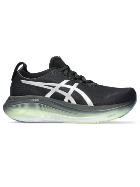 The GEL-NIMBUS® 27 LUXE shoe's soft cushioning properties help you feel like you're landing on clouds. This design is revamped to help create a softer and smoother running experience. Its colorway is inspired by the hours of the day when the sun is rising and falling. A soft engineered jacquard mesh upper comfortably wraps your foot while supplying advanced ventilation. Additionally, the knit tongue and collar help provide a soft and supportive feel. By using FF BLAST™ PLUS ECO cushioning, this trainer creates a lighter and softer cushioning experience. Lastly, HYBRID ASICSGRIP™ outsole rubber helps create better traction, improved softness, and advanced durability. Style #: 1012B816.020 UPC #: None Tech & Materials Engineered jacquard mesh upper Wraps the foot with a soft feel At least 75% of the shoe's main upper material is made with recycled content to reduce waste and carbon emissions The sockliner is produced with the solution dyeing process that reduces water usage by approximately 33% and carbon emissions by approximately 45% compared to the conventional dyeing technology PureGEL™ technology Helps provide lightweight cushioning and softer landings FF BLAST™ PLUS ECO cushioning made with approximately 24% bio-based content using revewable sources creating a softer landing and a more responsive toe-off OrthoLite™ X-55 sockliner Improves step-in comfort Reflective details Designed to improve visibility in low-light conditions HYBRID ASICSGRIP™ outsole rubber Help create better traction, improved softness, and advanced durability