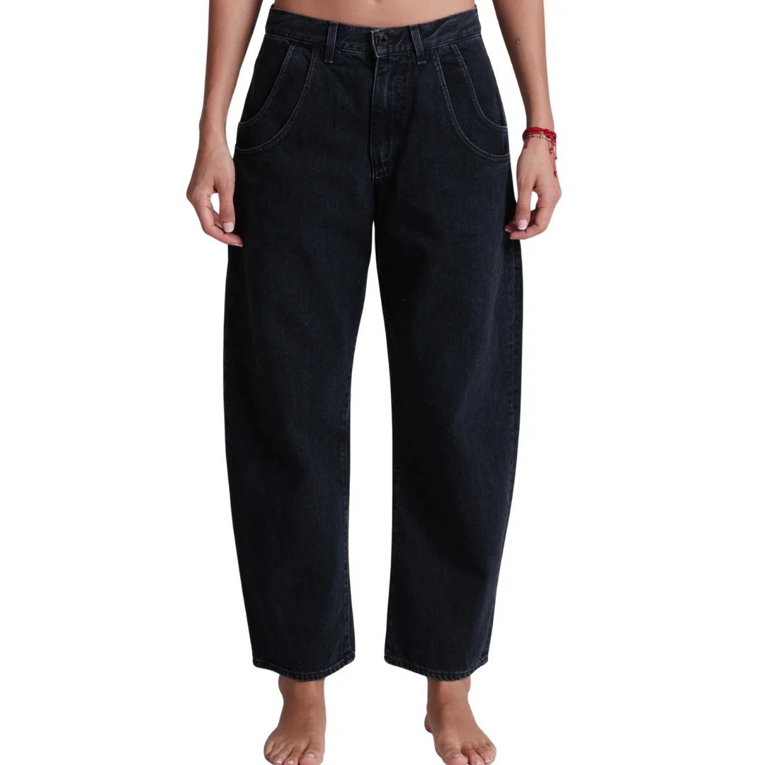 The Lenox is a relaxed, barrel-leg jean designed for effortless wear. With a mid rise and easy drape through the hip and thigh, this style nods to classic vintage denim while offering modern versatility. Cropped just above the ankle with a subtle taper, it's a laid-back silhouette that works with everything from sneakers to heels. Made from soft Japanese cotton denim that's built to last. Size Details - Rise: 11" / inseam: 28" / Leg Opening: 16" - 100% cotton - 10 oz Japanese denim - Made in Los Angeles