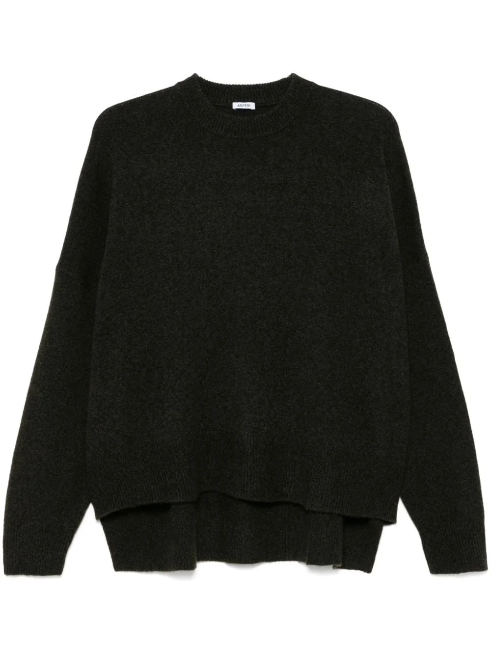 wool sweater Highlights - Dark green - Wool - Knitted construction - Melange effect - Ribbed trim - Crew neck - Drop shoulder - Long sleeves - High-low hem Imported Composition Wool 100% SIZE & FIT Model measurements Height 5 ft 10 in(1.78 m) Bust/Chest 33.85 in(86 cm) Hips 36.61 in(93 cm) Waist 26.77 in(68 cm) FittingInformation Designed to be unstructured, offering a loose fit throughout Made with a midweight knit, this piece offers some stretch Washing instructions Hand Wash