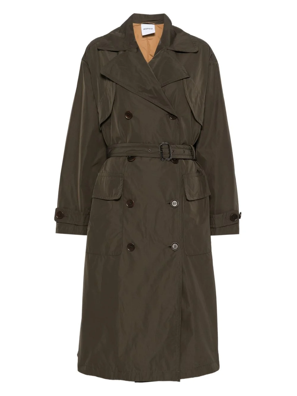 belted double-breasted coat Highlights - Olive green - Double-breasted closure - Belted waist - Flap pockets - Long sleeves - Button cuffs Made in Italy Composition Outer: Polyester 100% Lining: Polyamide 100% SIZE & FIT Model measurements Height 5 ft 9 in(1.75 m) Bust/Chest 34.64 in(88 cm) Hips 36.61 in(93 cm) Waist 26.37 in(67 cm) Washing instructions Read Manufacturer Guidelines