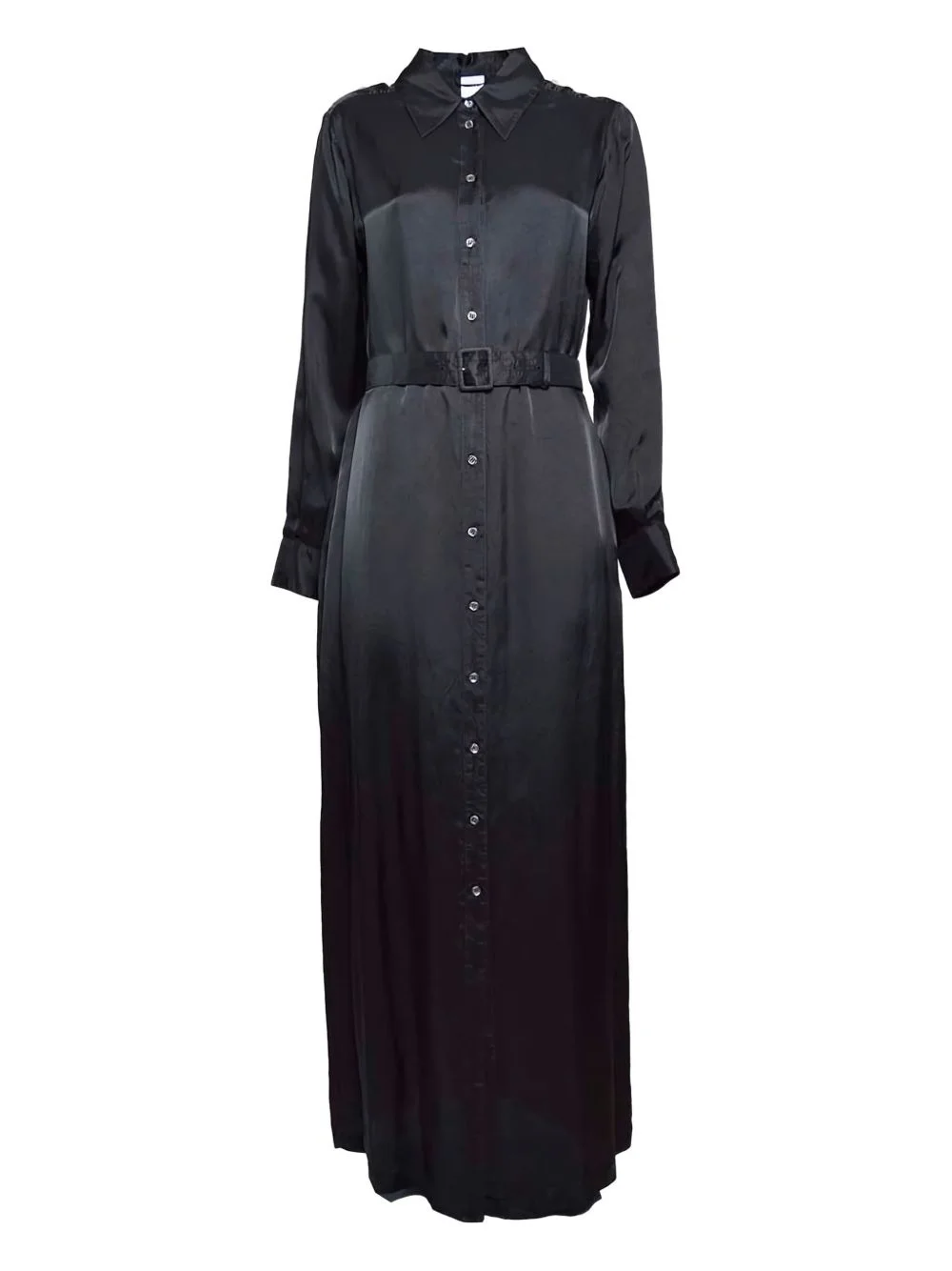 belted shirt dress Highlights - Black - Satin finish - Classic collar - Front button fastening - Long sleeves - Belted waist Made in Italy Composition Viscose 100% Washing instructions Read Manufacturer Guidelines