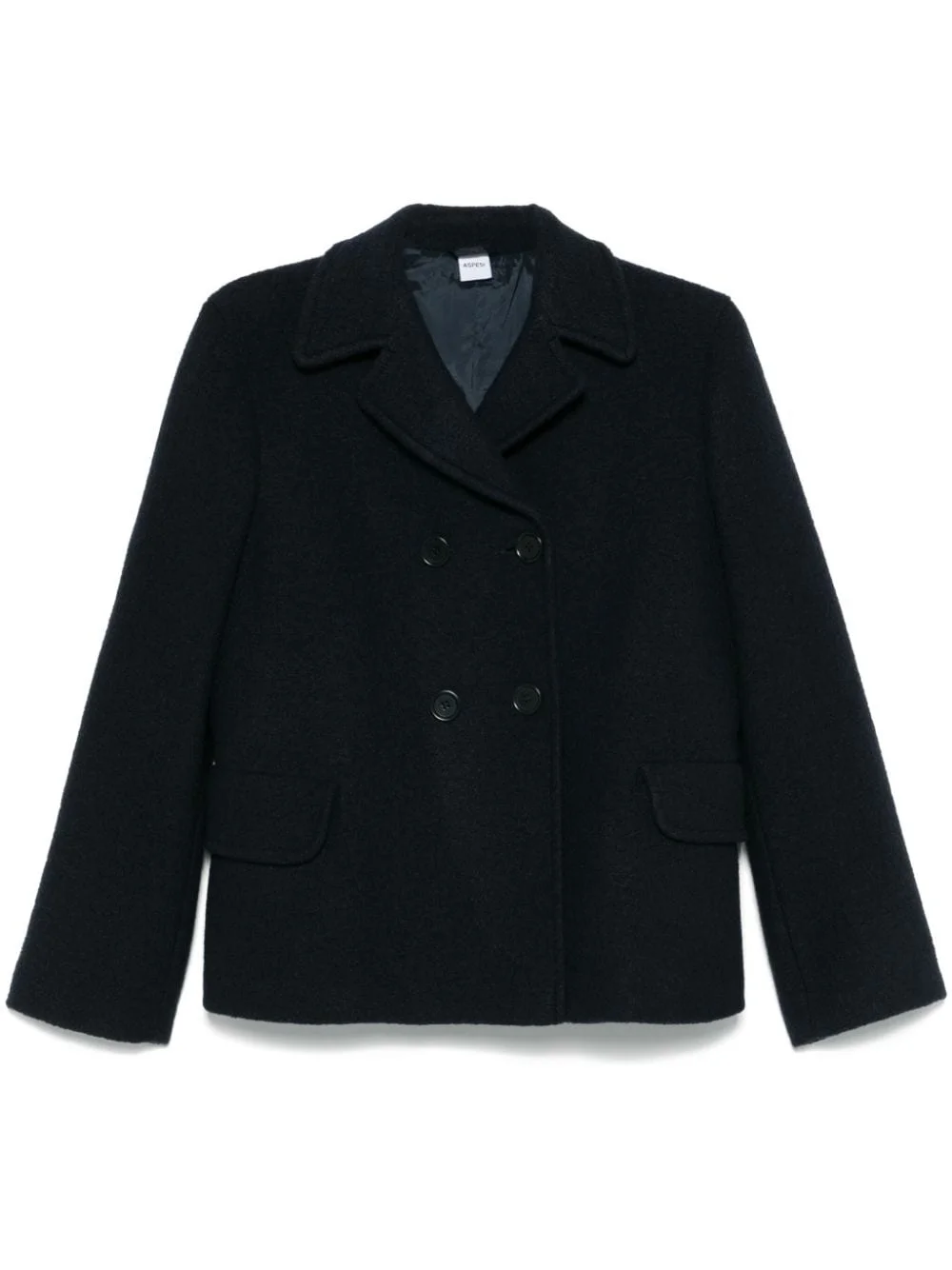 boucle jacket Highlights - Navy blue - Boiled wool - Double-breasted button fastening - Notched lapels - Long sleeves - Two side flap pockets - Full lining - A-line - Straight hem Made in Italy Composition Outer: Wool 100% Lining: Viscose 100% SIZE & FIT Model measurements Height 5 ft 10 in(1.77 m) Bust/Chest 33.07 in(84 cm) Hips 37 in(94 cm) Waist 24.8 in(63 cm) FittingInformation Designed for a relaxed fit, this piece allows for comfort and movement when worn Made from a midweight non-stretch fabric