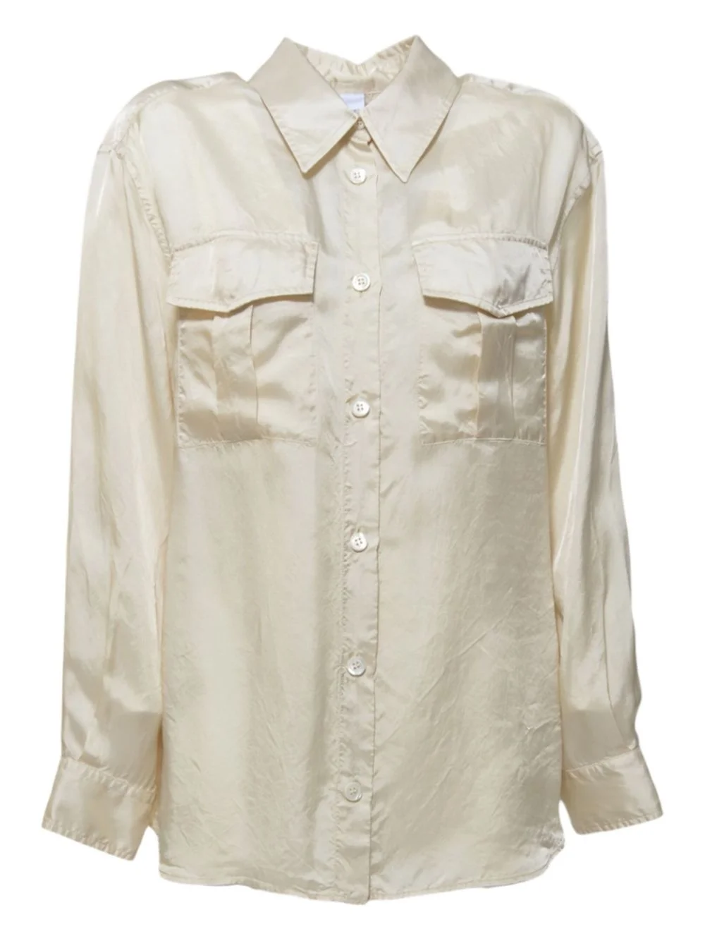 button-up shirt Highlights - Light beige - Two chest pockets - Pointed collar - Button fastening - Long sleeves - Curved hem Made in Italy Composition Viscose 100% Washing instructions Read Manufacturer Guidelines