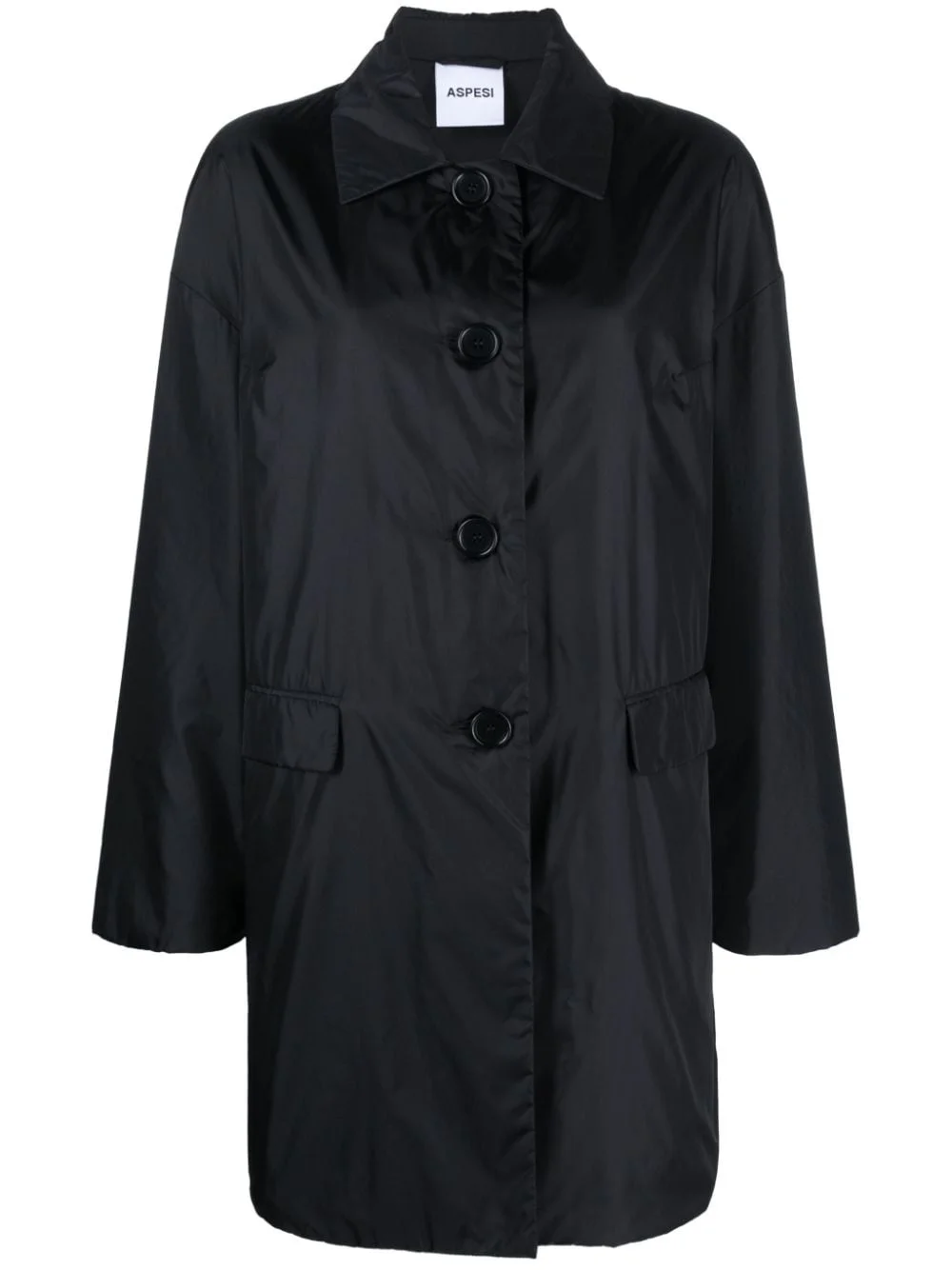 padded parka coat Highlights - Black - Padded design - Insulated design - Spread collar - Front button fastening - Long sleeves - Two front flap pockets - Straight hem - Thigh-length Imported Composition Lining: Polyamide 100%, Polyester 100% Outer: Polyamide 100% SIZE & FIT Model measurements Height 5 ft 10 in(1.77 m) Bust/Chest 34.64 in(88 cm) Hips 35.43 in(90 cm) Waist 24.8 in(63 cm) FittingInformation Designed to be unstructured, offering a loose fit throughout Made from a midweight non-stretch fabric This piece fits true to size – take your usual size Washing instructions Machine Wash