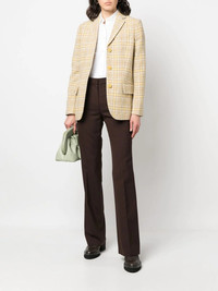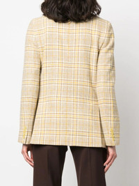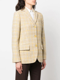 checked single-breasted blazer checked single-breasted blazer from ASPESI featuring light yellow, virgin wool blend, check pattern, notched lapels, front button fastening, front flap pockets, long sleeves and straight hem. Made in Italy Composition Lining: Viscose 100% Outer: Virgin Wool 100% SIZE & FIT Model measurements Height 5 ft 10 in(1.78 m) Bust/Chest 31.49 in(80 cm) Hips 36.22 in(92 cm) Waist 25.59 in(65 cm) FittingInformation This piece fits true to size. We recommend you get your regular size Cut for a slim fit Made with a mid-weight non-stretch fabric Washing instructions Dry Clean Only