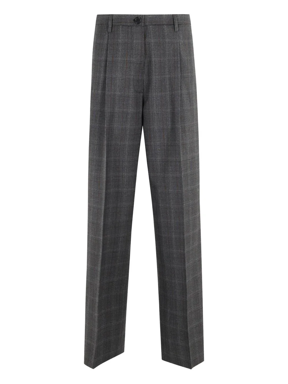checked trousers Highlights - Dark grey - Checked pattern - Dart detailing - Button fly fastening - Belt loops - Side pockets Imported Composition Fabric 100% Washing instructions Read Manufacturer Guidelines