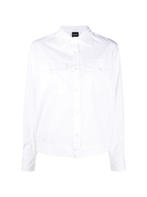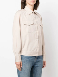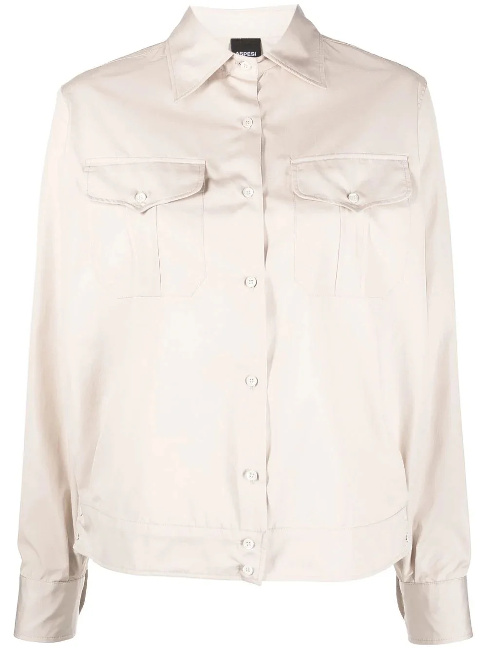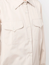 chest flap pocket shirt beige cotton blend two front flap pockets front button fastening classic collar long sleeves buttoned cuffs straight hem Imported Composition Cotton 100% SIZE & FIT Model measurements Height 5 ft 10 in(1.77 m) Bust/Chest 35.03 in(89 cm) Hips 35.03 in(89 cm) Waist 23.62 in(60 cm) FittingInformation This piece fits true to size. We recommend you get your regular size Cut for a loose fit Made with a mid-weight non-stretch fabric Washing instructions Machine Wash