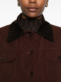 corduroy-collar buttoned jacket Highlights - Bordeaux red - Corduroy collar - Multiple flap pockets - Button fastening - Long sleeves - Straight hem Imported Composition Cotton 45%, Polyester 39%, Polyamide 16% SIZE & FIT Model measurements Height 5 ft 11 in(1.8 m) Bust/Chest 31.49 in(80 cm) Hips 36.61 in(93 cm) Waist 24.4 in(62 cm) Washing instructions Read Manufacturer Guidelines