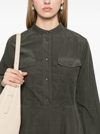 corduroy midi dress Highlights - Dark green - Cotton - Corduroy - Band collar - Two chest patch pockets - Long sleeves - Buttoned cuffs - Flared skirt - Unlined - Straight hem - Short front button fastening Made in Italy Composition Cotton 100% SIZE & FIT Model measurements Height 5 ft 9 in(1.75 m) Bust/Chest 31.88 in(81 cm) Hips 34.64 in(88 cm) Waist 24.01 in(61 cm) FittingInformation Designed for a close fit at the chest and waist with a loose fit at the hip Made from a midweight non-stretch fabric This piece fits true to size – take your usual size Washing instructions Machine Wash