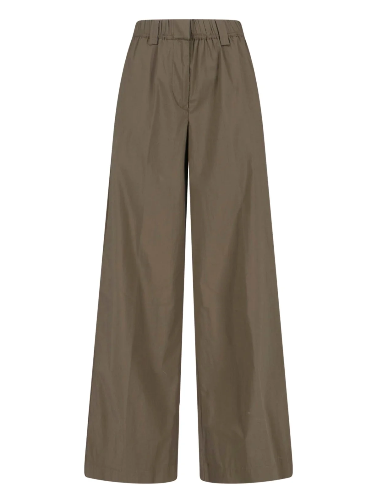ASPESI GREEN PANTS IN ASPESI COTTON BLEND WITH HIGH ELASTIC WAIST, BELT LOOPS, HOOK AND ZIP CLOSURE, TWO SIDE POCKETS, ONE BACK POCKET, WIDE LEG. PRODUCT INFO PRODUCT CODE 0117 P07601237 COMPOSITION: 62% COTTON, 35% POLYAMIDE, 3% ELASTANE SIZE AND FIT: REGULAR FIT MADE IN: ROMANIA