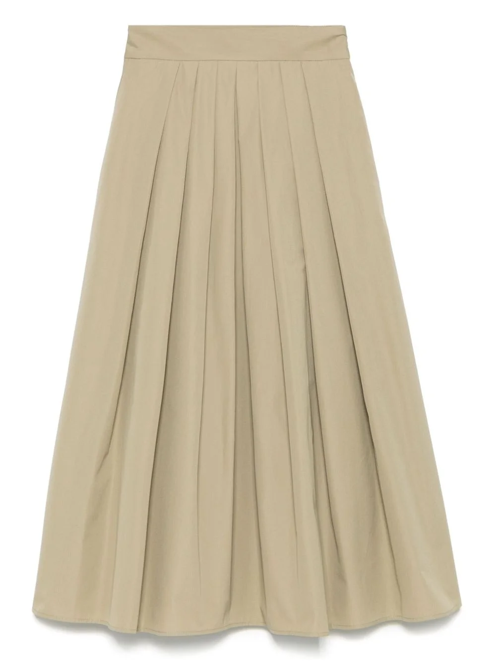cotton midi skirt Highlights - Light olive green - Concealed side zip fastening - Two side inset pockets - Pleat detailing Made in Italy Composition Cotton 100%