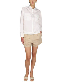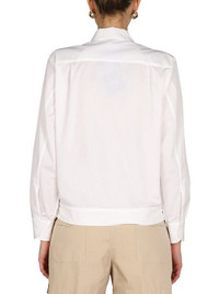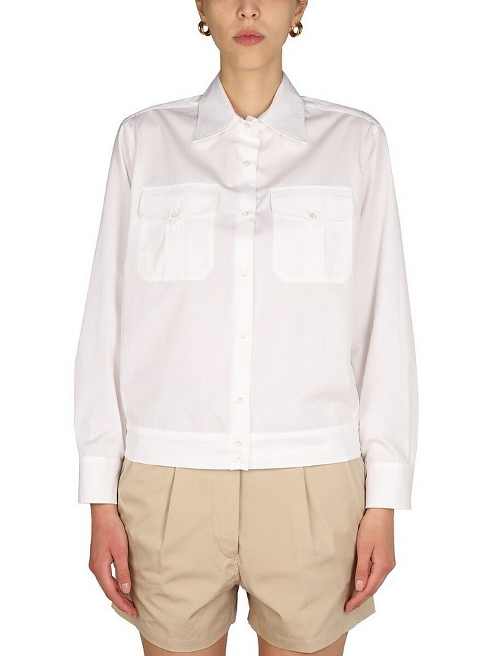 Pointed collar, front closure with buttons, two patch pockets on the chest with flap, regular fit, made in italy, the model is 180 cm tall and wears size 40 it. DETAILS Warranty: 2 Years Warranty Material Lining: Unlined Color: White Care instructions: Hand Wash