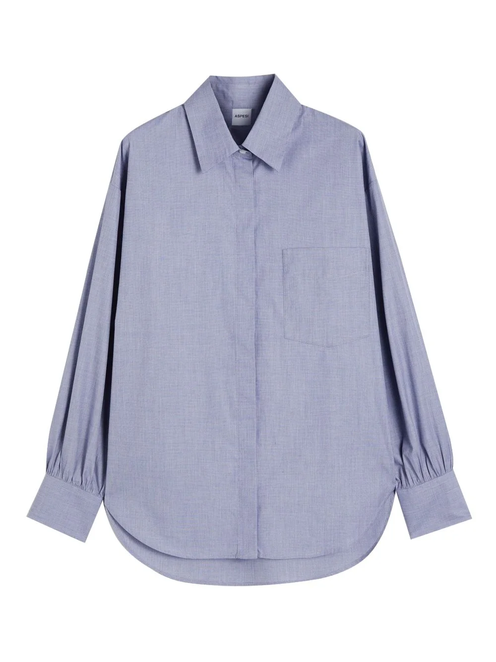 chest-pocket long-sleeve shirt Highlights - Light blue - Chest pocket - Buttoned cuffs - Long sleeves - Curved hem - Button fastening Imported Composition Cotton 100% Washing instructions Read Manufacturer Guidelines